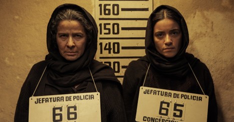 Arcelia Ramírez y Paulina Gaitán interpretan a Arcángela y Serafina Baladro, las dos hermanas que construyeron la red de burdeles en donde explotaban sexualmente a mujeres jóvenes.