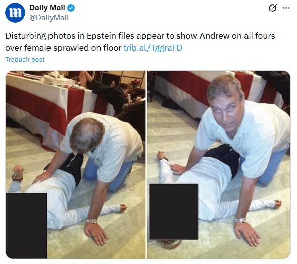 El príncipe Andrés es otro de los famosos cuyos nombres se repiten una y otra vez en los archivos de Epstein. Fue uno de los más embarrados en la publicación previa a la de este 30 de enero, y ahora aparece en muchas de las casi 180 mil fotos reveladas.