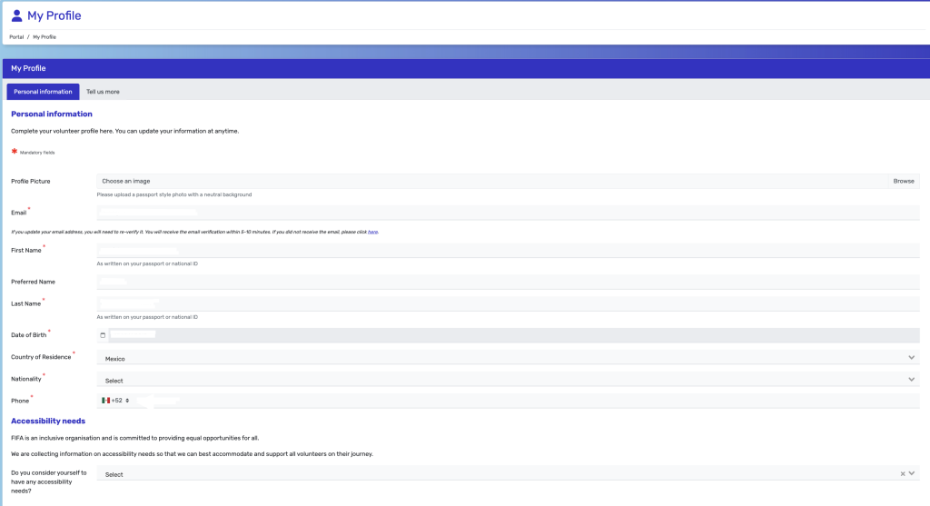 “Algunos programas de voluntariado podrían estar disponibles solo para residentes del país anfitrión con el fin de fomentar la participación y el legado local. Si cumples los requisitos para ser voluntario en el torneo, podrás hacerlo directamente a través de tu panel de control.”